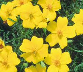 Es una pequeña flor de cinco pétalos amarillos, naranjas o rojos con centros dorados, apenas de un centímetro de tamaño. Tanto las flores como las delicadas hojas ofrecen un aroma a limón delicado.