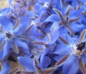 De color azul eléctrico, son flores muy pequeñas en forma de estrella. Cuando se consume la flor de borraja se aprecia su sabor fino y delicado.